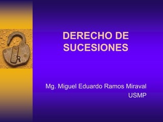 Este documento proporciona una introducción al curso de Derecho de Sucesiones impartido por el profesor Miguel Ramos. En las primeras semanas, el curso cubrirá los conceptos básicos de sucesión hereditaria, incluidos los elementos, clases y formas de suceder, así como los requisitos y tipos de sucesores. También se explicarán conceptos como la apertura de la sucesión, la transmisión de bienes y obligaciones, y la vocación sucesoria. El curso utilizará métodos como clases magistrales e intervencion