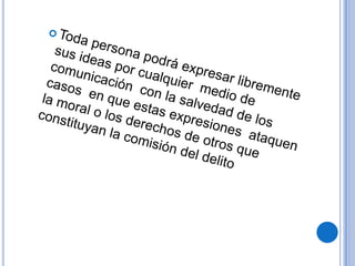La Comisión Nacional de los Derechos Humanos es el órgano responsable de proponer y vigilar la política nacional en materia de derechos humanos en México. La Comisión se estableció en 1990 y tiene el mandato de garantizar la protección de los derechos humanos de todos los mexicanos y extranjeros en territorio nacional. El documento luego enumera los principales derechos humanos protegidos en México, como la igualdad, la libertad personal, la libertad de expresión, el derecho a la educación y a la salud, entre