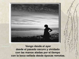 Este poema narra la historia de la mujer a través de la historia de la humanidad, desde tiempos remotos hasta la actualidad. Describe cómo la mujer ha sido esclavizada, violada y oprimida por siglos, obligada a servir a los hombres sin tener autonomía sobre su propia vida. Finalmente, las mujeres se unen para reclamar su poder e igualdad, haciendo un llamado a construir un mundo sin distinciones de género donde ambos sexos trabajen juntos.