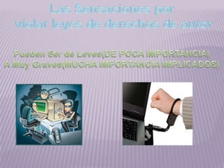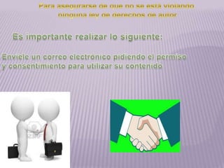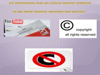 Este documento describe los derechos de autor y las normas relacionadas. Explica que los derechos de autor son un conjunto de normas jurídicas que regulan los derechos morales y patrimoniales de los autores sobre sus creaciones literarias, artísticas u otras obras. También cubre conceptos como el uso justo, trabajos derivados, créditos y atribuciones requeridos, y los símbolos utilizados para indicar la protección de derechos de autor.