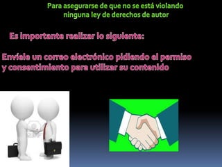 2. Se requiere el permiso por escrito del autor para utilizar su material protegido, de lo contrario se estaría infringiendo los derechos de autor.