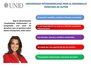 El documento trata sobre los derechos de autor y propiedad intelectual. Explica que los derechos de autor protegen las obras originales creadas por humanos como literatura, música, películas y más. También cubre los principios de los derechos de autor como la creación intelectual original y la falta de protección de ideas. Además, describe cómo se reconocen legalmente los derechos de autor nacionales y las obras que están y no están protegidas por los derechos de autor.
