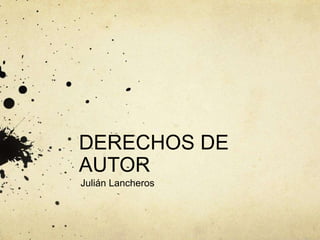 El documento define los derechos de autor, incluyendo que todo creador de obras literarias y artísticas es el autor y tiene derechos morales y patrimoniales sobre su obra. El derecho moral es inalienable e incluye el derecho a ser reconocido como autor y evitar deformaciones de la obra. El derecho patrimonial permite al autor explotar y autorizar el uso de su obra por terceros de forma temporal y onerosa. El documento también lista diferentes tipos de obras protegidas y menciona que existen licencias libres como Creative Commons que permiten