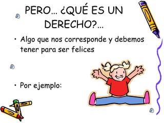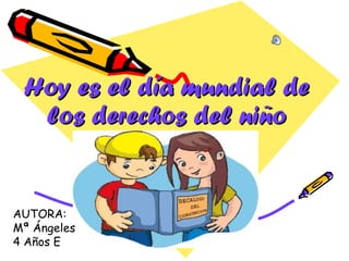 El documento habla sobre los derechos de los niños en el Día Mundial de los Derechos del Niño. Enumera varios derechos fundamentales de los niños como el derecho a la salud, el amor, la educación, la alimentación, la igualdad y la paz, incluyendo a los niños con discapacidad. Los niños del colegio Las Salinas desean que todos los niños del mundo tengan los mismos derechos.