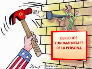 Este documento describe los derechos fundamentales de las personas. Explica que los derechos fundamentales son facultades reconocidas por la ley suprema que permiten a las personas realizar u omitir ciertos actos. Entre los derechos fundamentales se encuentran el derecho a la vida, la igualdad ante la ley, la libertad de conciencia y religión, la libertad de expresión, a la protección de la salud, al honor y la intimidad personal. El Estado tiene el deber de promover, proteger y respetar los derechos fundamentales de todas las personas sin discriminación