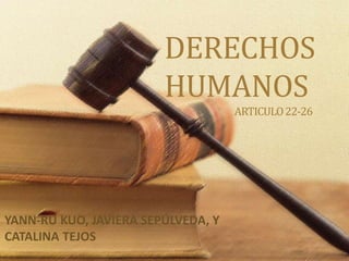 Este documento describe los derechos humanos fundamentales establecidos en los artículos 22 al 26 de la Declaración Universal de Derechos Humanos. Estos incluyen el derecho a la privacidad, el derecho al trabajo, el derecho a un nivel de vida adecuado, y el derecho a la educación. El documento también explica que todos los derechos humanos son indivisibles e interdependientes.