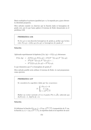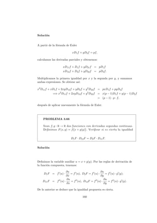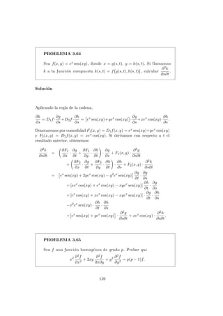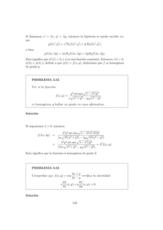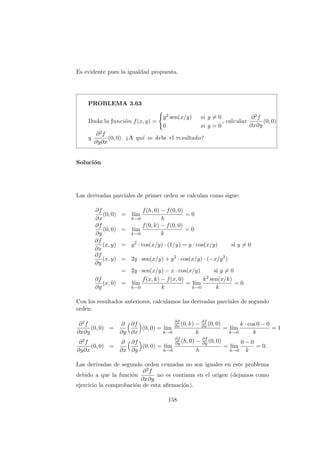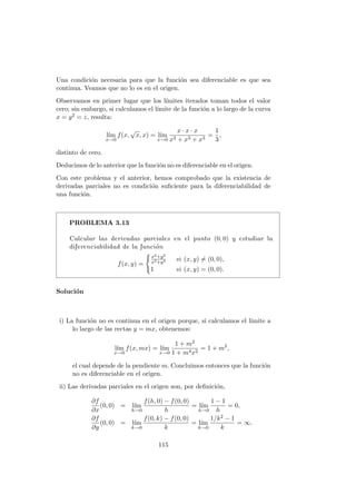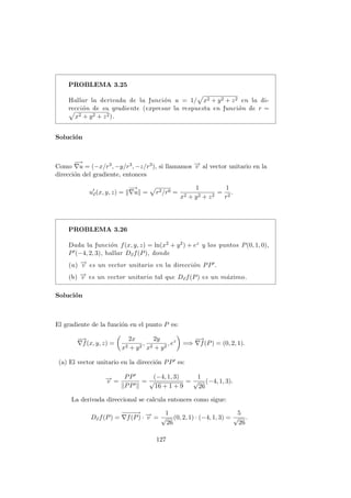 Este documento presenta conceptos clave sobre el cálculo diferencial de funciones de varias variables, como derivadas parciales, derivadas direccionales y derivadas de orden superior. Introduce las definiciones formales de derivadas parciales y direccionales, y discute propiedades como que las derivadas parciales se pueden obtener como componentes de la derivada direccional. Luego, presenta una serie de problemas resueltos como ejemplos para ilustrar estos conceptos.