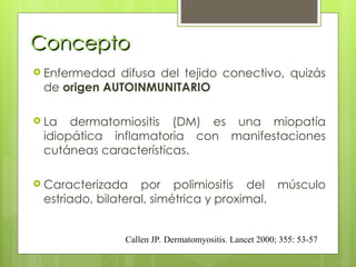 Callen JP. Dermatomyositis. Lancet 2000; 355: 53-