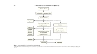 El documento describe el derrame pleural, definido como la acumulación anormal de líquido en la cavidad pleural. Explica su fisiopatología, etiologías, diagnóstico y tratamiento. Respecto al diagnóstico, señala los criterios de Light para distinguir entre trasudados y exudados, y que la radiografía, ecografía y TAC son útiles. En cuanto al tratamiento, indica que los objetivos son controlar infecciones con antibióticos apropiados, drenar el derrame si está infectado o es complejo,