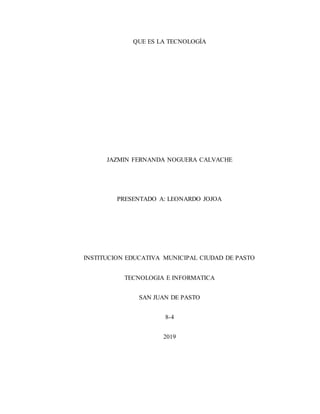 Este documento describe qué es la tecnología. Explica que la tecnología se refiere a los objetos creados por los humanos para satisfacer necesidades y resolver problemas, mejorando la calidad de vida. Detalla las necesidades básicas y secundarias que la tecnología ayuda a cubrir, como la alimentación, el vestido, la vivienda, la salud, la comunicación y el transporte. Además, explica que la tecnología implica la imaginación, los materiales, los conocimientos científicos y las técnicas