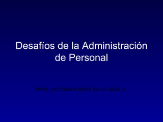 El documento aborda los desafíos de la administración de personal, incluyendo cambios en la educación, demografía, globalización y legislación, que impactan la fuerza laboral y la competitividad. Destaca la importancia de adaptarse a un entorno cambiante y diverso, así como la necesidad de que las organizaciones manejen sus recursos humanos de manera eficaz para ser competitivas. Se menciona la evolución de la administración de recursos humanos y la necesidad de equilibrar objetivos organizacionales con necesidades individuales.