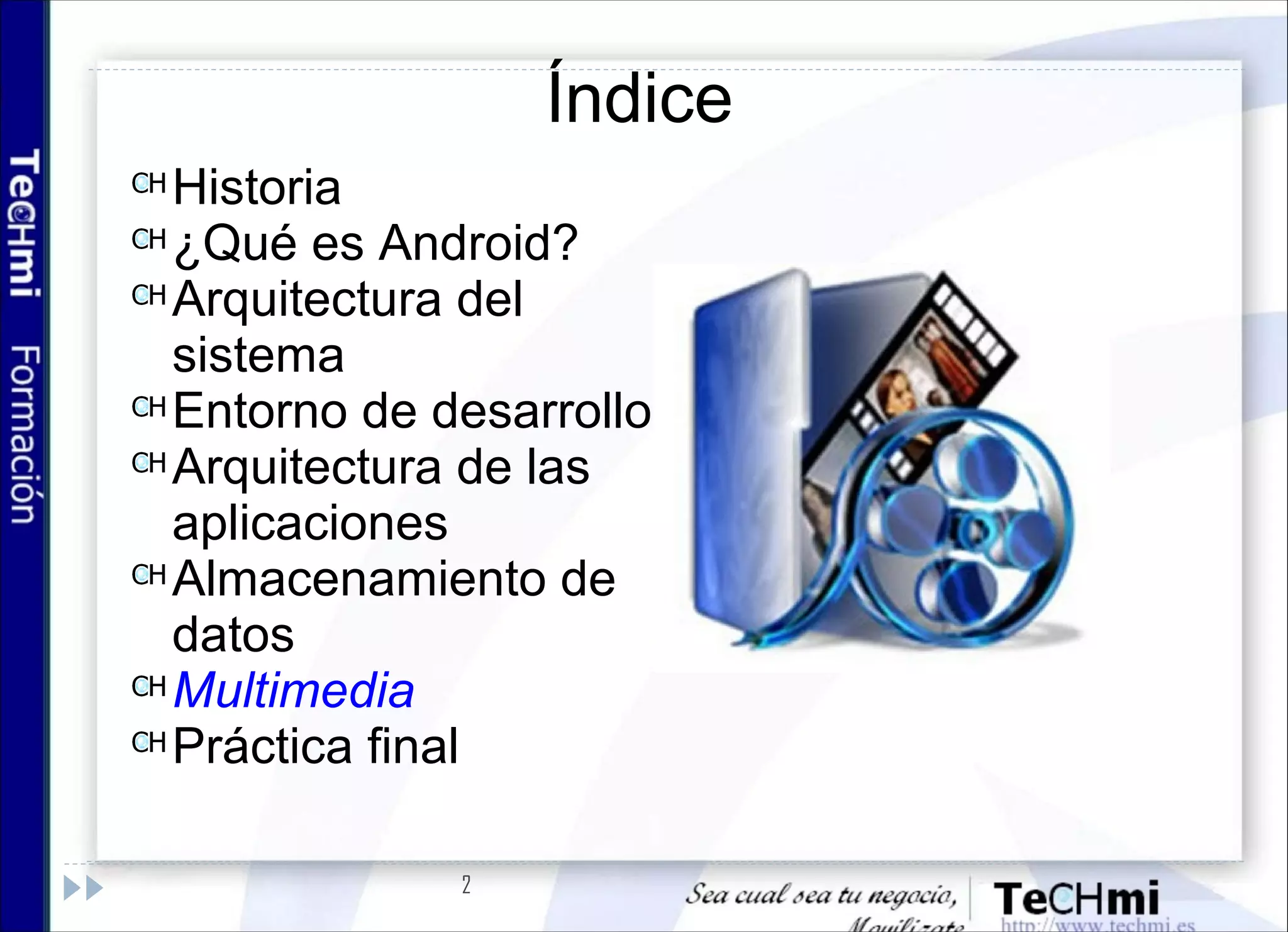 Este documento resume los conceptos clave del desarrollo de aplicaciones móviles en Android. Explica cómo reproducir audio y video utilizando la clase MediaPlayer, capturar imágenes de la cámara con Camera, reproducir video con VideoView y dibujar en Canvas. También incluye ejemplos de código para cada uno de estos temas.