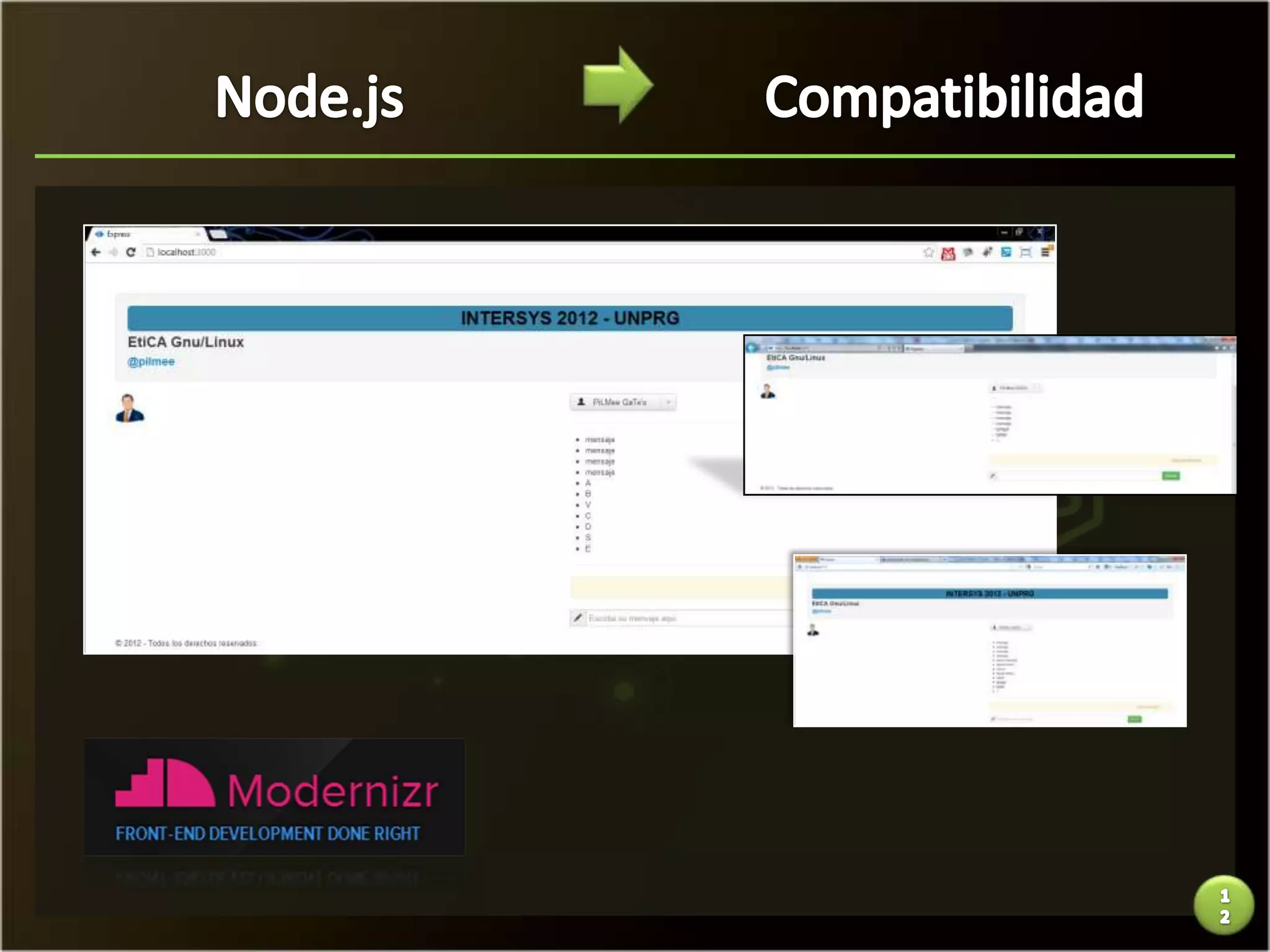 El documento describe node.js como una plataforma basada en JavaScript que permite crear aplicaciones de red escalables y eficientes, empleando un modelo event-driven. Se centra en el framework express.js, destacando su facilidad de uso para la gestión de proyectos web, y menciona herramientas como jade y socket.io para mejorar la creación y experiencia en aplicaciones en tiempo real. Además, se enfatiza la capacidad de node.js para manejar múltiples conexiones simultáneamente sin bloqueos, mejorando así el rendimiento.