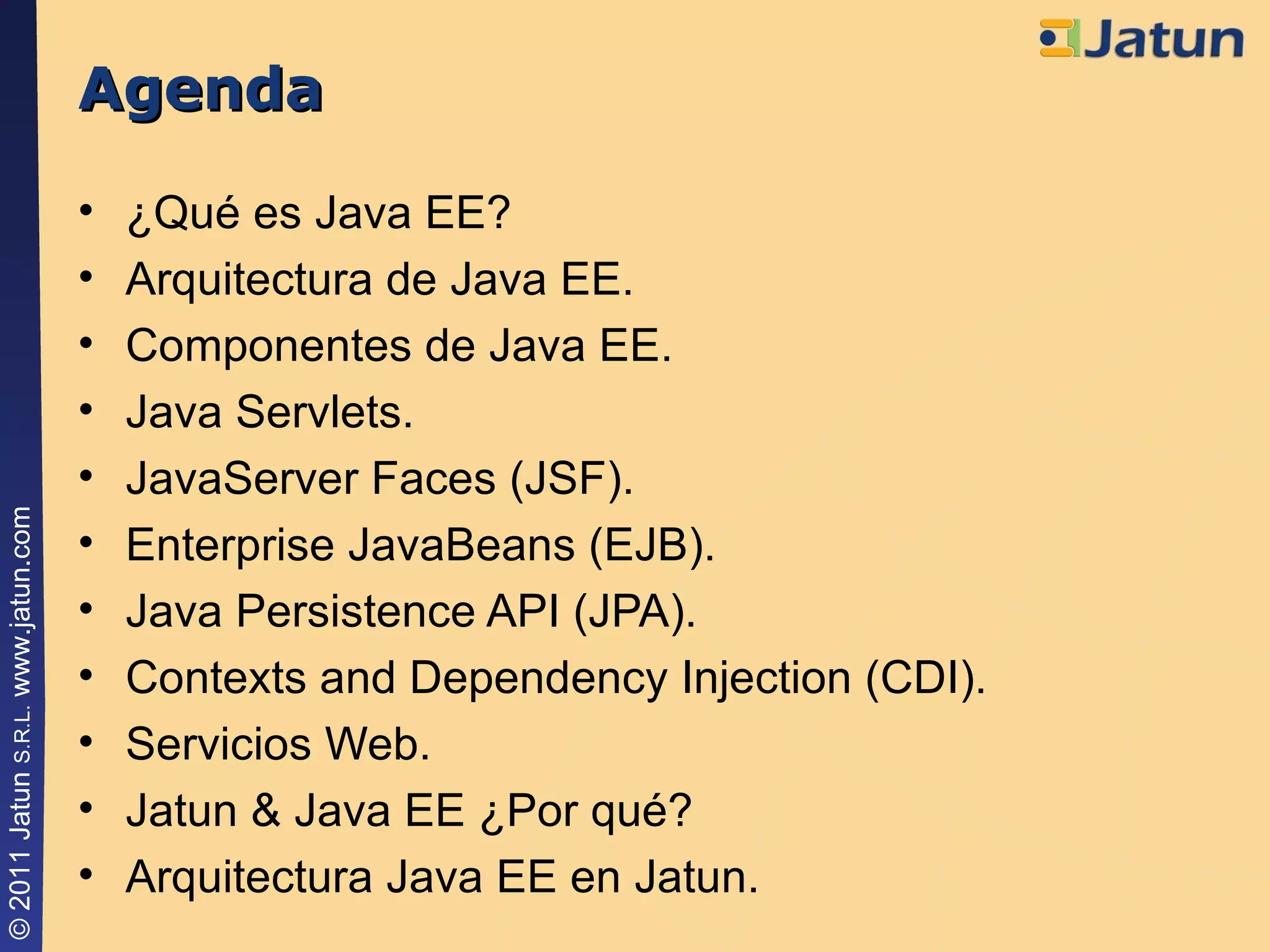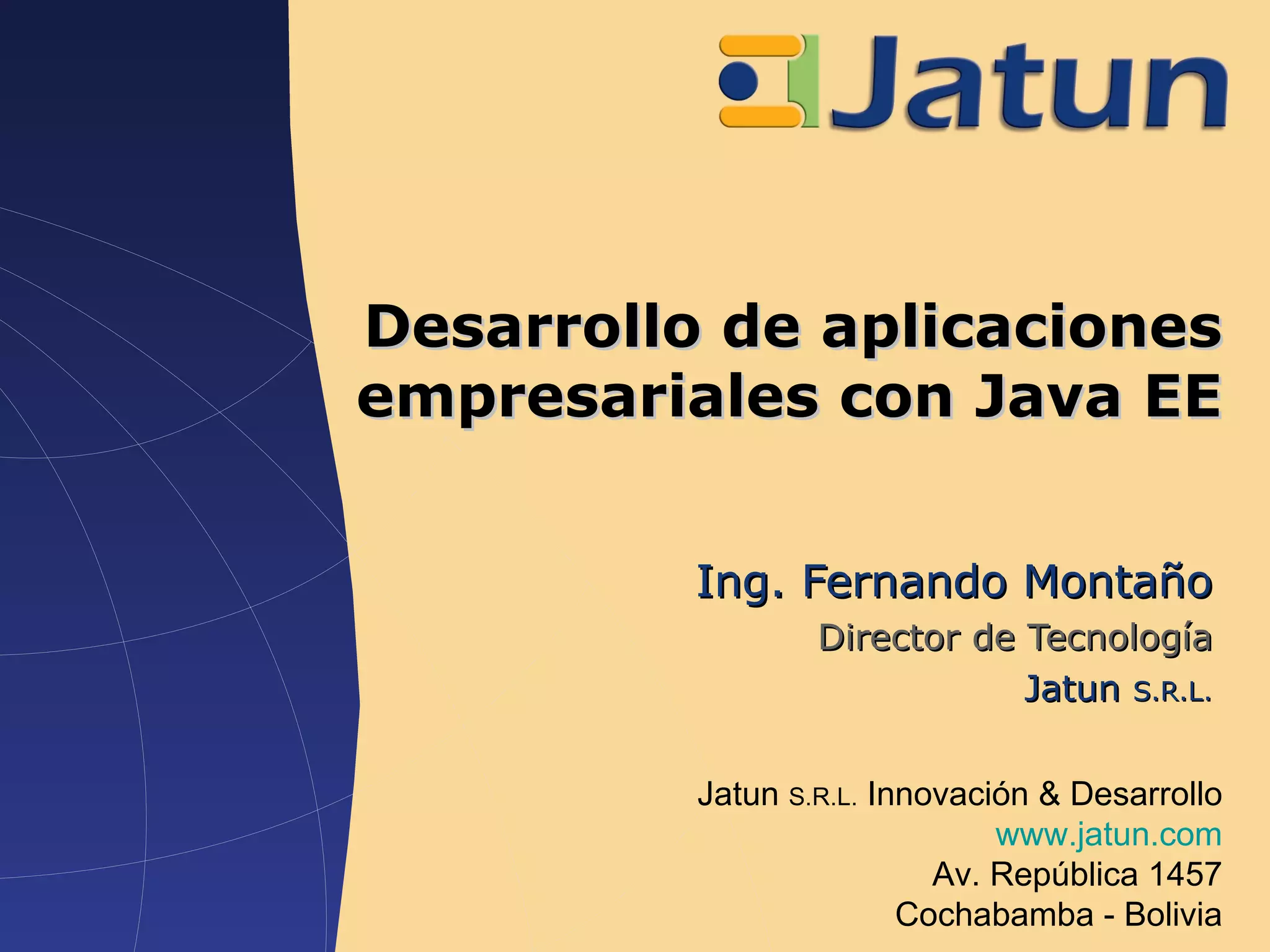 Este documento presenta una introducción a Java EE, incluyendo sus componentes principales como Servlets, JavaServer Faces, Enterprise JavaBeans y Java Persistence API. También describe cómo Jatun utiliza la arquitectura Java EE para desarrollar aplicaciones empresariales flexibles y escalables.