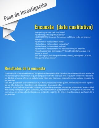 Este documento describe una plataforma de video y descarga con streaming que permite a los usuarios transmitir películas y series de televisión desde Internet a sus televisores. El servicio cuenta con una biblioteca de contenido que se actualiza cada tres meses y permite a los usuarios buscar, descargar y reproducir contenido de manera instantánea. El servicio funciona a través de una suscripción mensual que requiere conexión a Internet para transmitir contenido desde la computadora a la televisión.