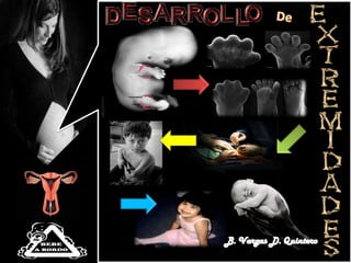 El documento presenta información sobre malformaciones congénitas en las extremidades. Señala que alrededor de 1,500 bebés nacen anualmente con malformaciones en las extremidades superiores y 750 con malformaciones en las extremidades inferiores. Estas malformaciones pueden incluir reducción en el tamaño de las extremidades, fusiones de dedos u otros defectos. Las causas de estas malformaciones no están del todo claras, pero podrían incluir exposición de la madre a sustancias químicas, medicamentos o tabaco durante el embarazo.