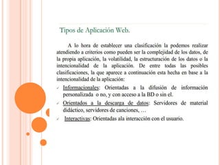 Este documento describe las fases de desarrollo de un proyecto de software orientado a la web, incluyendo el desarrollo, los requisitos, las pruebas y la medición de la calidad. Explica que el desarrollo de software para la web requiere estructurar grandes cantidades de datos volátiles para su consulta y análisis a través de navegadores. Además, detalla las fases de un proyecto como el análisis de requisitos, diseño, implementación, pruebas e implementación, y los factores que influy
