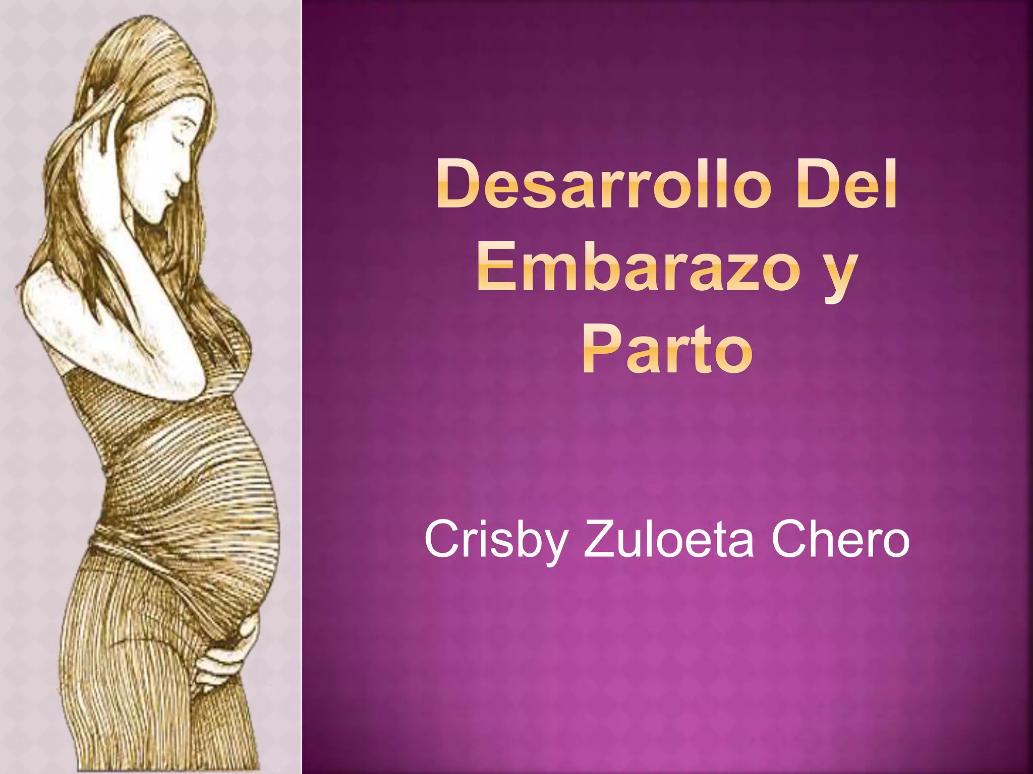 El documento describe las etapas clave del desarrollo del embarazo y el parto. En la primera semana, el óvulo fertilizado se implanta en el útero. En las siguientes semanas, se forman los principales órganos como el corazón y el cerebro. A medida que avanza el embarazo, el feto crece y desarrolla sus sentidos, movimientos y otros sistemas. Para la semana 40, el bebé está listo para nacer, con pulmones maduros para respirar de forma independiente.