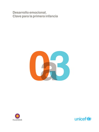 El capítulo describe lo esperable en el desarrollo emocional de un niño entre 0 y 3 años. Señala que un bebé necesita sostén emocional a través de un vínculo estable con sus cuidadores primarios para desarrollarse adecuadamente. También requiere que sus cuidadores lo ayuden a regular sus emociones, ya que carece de esta capacidad al nacer. El capítulo explica además que el desarrollo emocional, cognitivo y social están íntimamente relacionados durante la primera infancia.