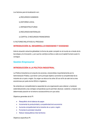 El desarrollo endógeno se basa en el liderazgo y las decisiones que surgen desde dentro de la comunidad. Busca satisfacer las necesidades básicas de la comunidad y promover la participación y conservación ambiental. En Venezuela, las políticas de desarrollo endógeno han llevado a que estados como Guárico y Mérida se especialicen en cultivos y hortalizas, impulsando el progreso sostenido del país. El desarrollo endógeno es clave para que una nación logre un crecimiento político, social