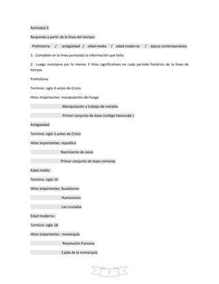 El documento describe varias actividades de un estudiante sobre la Edad Media. Resume los principales cambios durante este período como el surgimiento del feudalismo, el declive de las culturas clásicas y el ascenso del cristianismo. También destaca la importancia de Carlo Magno y su imperio, así como el papel preponderante de la Iglesia Católica en la sociedad medieval a través de su influencia cultural y educativa. Finalmente, identifica algunos elementos claves de cambio durante este periodo como el desarrollo de universidades y monarquías n