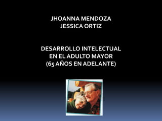 El documento describe el desarrollo intelectual en adultos mayores de 65 años o más, señalando que aunque ganan sabiduría a través de la experiencia, también experimentan limitaciones físicas, deterioro de neuronas, y dificultades como menor eficiencia física, retener información a largo plazo, y resolver nuevos problemas.