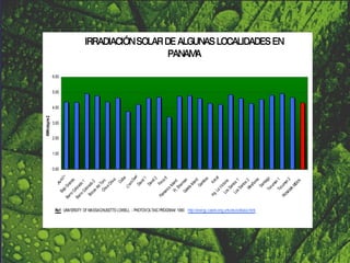 Este documento presenta información sobre el estado de la oficina de desarrollo limpio en Panamá. Detalla la geografía, clima e impactos del cambio climático en el país. También describe el marco legal energético de Panamá, su potencial de energías renovables y proyectos calificados para el Mecanismo de Desarrollo Limpio. Finalmente, resume las actividades realizadas por la Fundación Panameña de Servicios Ambientales para promover proyectos de reducción de emisiones.