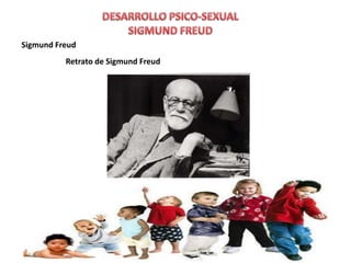 Sigmund Freud, nacido en 1856 y fallecido en 1939, es el creador del psicoanálisis y una figura clave del siglo XX, cuyo desarrollo psicosexual propone que la libido se desarrolla en cinco etapas desde el nacimiento hasta la adultez. Cada etapa, que está vinculada a partes específicas del cuerpo, influye en la formación de la personalidad y la salud psicológica, destacando que problemas en cada una de estas etapas pueden llevar a fijaciones y trastornos de la personalidad. Su teoría ha generado tanto controversia como interés y sigue siendo discutida en el ámbito científico actual.