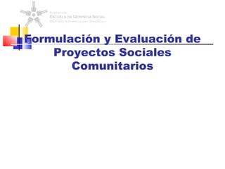 Este documento presenta un resumen de tres temas sobre la formulación y evaluación de proyectos sociales comunitarios. El Tema 1 cubre la identificación de proyectos, incluyendo conceptos como desarrollo social comunitario y participación. El Tema 2 trata sobre la formulación de proyectos, con una matriz de planificación. El Tema 3 se refiere a la evaluación de proyectos comunitarios.