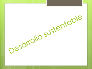 El documento define el desarrollo sostenible como satisfacer las necesidades de las generaciones presentes sin comprometer las posibilidades de las generaciones futuras. Explica que el desarrollo sostenible busca mantener o mejorar el sistema ambiental a través de la actividad económica y mejorar la calidad de vida de todos de manera eficiente mediante el reciclaje, la reutilización y tecnologías limpias, además de restaurar ecosistemas dañados. Establece condiciones como no utilizar recursos renovables a un ritmo mayor que su