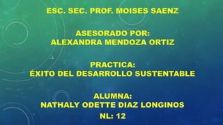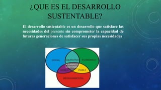 El documento describe los esfuerzos de Grupo Bimbo en materia de desarrollo sustentable en México. La empresa ha implementado iniciativas para reducir su huella de carbono, consumo de agua y residuos, y mejorar la nutrición de sus productos. Grupo Bimbo también apoya programas de reforestación, capacitación de empleados y organizaciones comunitarias, siendo un ejemplo para otras empresas mexicanas en términos de responsabilidad ambiental y social.
