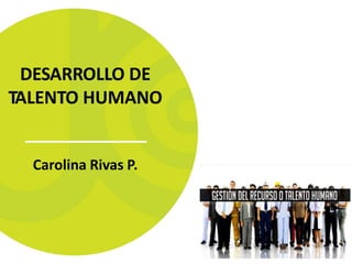 El documento habla sobre el desarrollo de talento humano a través de procesos educativos que permitan el crecimiento de las habilidades de los empleados y la organización. Explica los tipos de capacitación como la formación profesional, el desarrollo y entrenamiento profesional. También describe el proceso de capacitación que incluye determinar las necesidades, programar, implementar, y evaluar los resultados.