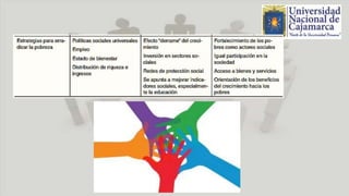El documento discute el concepto de desarrollo humano desde tres perspectivas: 1) los informes sobre desarrollo humano de la ONU, 2) la perspectiva de Amartya Sen y Mahbub ul Haq que enfatiza las capacidades y libertades de las personas, y 3) una perspectiva que considera la dignidad humana como fundamento del desarrollo. También analiza tendencias generales en América Latina como bajo desarrollo científico-tecnológico, desigualdad y la necesidad de superar las desigualda
