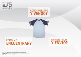 Charla sobre Moda y Ecommerce Nos especializamos en el desarrollo de soluciones de e-commerce, con alto valor agregado para nuestros clientes, y una marcada orientación a resultados mensurables. Para obtener una implementación eficaz es fundamental conocer y entender el modelo de negocio de nuestros clientes. De esta manera podremos maximizar el ROI del canal y la experiencia online de compra. El canal E-commerce debe ser tratado como un punto de venta mas dentro de la organización. Proveemos soluciones de negocio pensadas para cada necesidad • Indumentaria • Electro hogar • Alimentos • Telefonía • Real Estate • Agro • Cosmetica • Espectáculos y entretenimiento • Venta mayorista • Retail en general