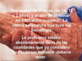 Una madre compró desayunos para dos vagabundos en McDonald's como parte de un proyecto universitario. Al ver la sonrisa del hombre de ojos azules a pesar de su situación, sintió la necesidad de ayudarlos. Les llevó desayunos a su mesa y les dijo que Dios actuaba a través de ella para darles esperanza. Este acto conmovió a su familia y profesora, enseñándole sobre la aceptación incondicional.