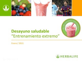 Este documento trata sobre la importancia de un desayuno saludable. Explica que no desayunar o hacerlo con alimentos ricos en carbohidratos simples puede acarrear consecuencias como picar entre horas, falta de concentración y cansancio. También destaca que el desayuno debería proporcionar nutrientes esenciales como proteínas, fibra, vitaminas y minerales para que el cuerpo se recargue de energía. Finalmente, presenta algunas opciones de desayuno saludable de Herbalife como batidos y bebidas que