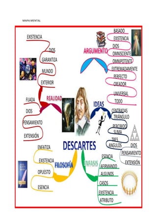 La biografía resume la vida y obra de René Descartes. Nació en Francia en 1596 en una familia noble. Estudió con los jesuitas y luego derecho, tras lo cual viajó por Europa y se unió al ejército holandés. Tuvo varias revelaciones que le llevaron a dedicarse a la filosofía. Publicó su Discurso del Método en 1637 y sus Meditaciones Metafísicas en 1641. Murió en Suecia en 1650 mientras impartía lecciones a la reina Cristina.
