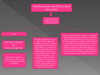 Descartes usa el ejemplo para cuestionar la naturaleza de la realidad y los sentidos, ya que a través de él se da cuenta de que los sentidos pueden engañar y que aunque imagine cosas de manera diferente, él sigue existiendo. Este ejemplo le ayuda a establecer su método filosófico de la duda para alcanzar la certeza de que él existe a través del pensamiento, aunque no esté seguro de la naturaleza de su cuerpo.