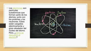 J.J. Thomson descubrió el electrón en 1897 a través de experimentos con rayos catódicos en campos eléctricos y magnéticos. Al colocar una cruz de mica dentro de un tubo de vacío, observó que los rayos se desviaban, indicando que estaban compuestos de partículas más pequeñas que los átomos, a las que llamó "corpúsculos". Más tarde, se dieron cuenta de que la corriente eléctrica es el movimiento de estos corpúsculos, ahora llamados electrones, lo que les d
