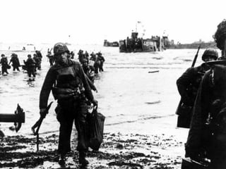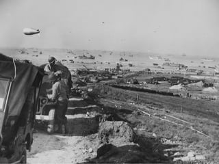 El documento describe el desembarco de Normandía del Día D en 1944, la mayor operación anfibia de la historia. Involucró el transporte de tropas, vehículos y suministros a través del Canal de la Mancha desde Inglaterra hasta 5 playas en Normandía, Francia (Sword, Juno, Gold, Omaha y Utah), a pesar de las fortificaciones alemanas como el Muro Atlántico. Se realizó un gran bombardeo previo y los paracaidistas aseguraron objetivos clave detrás de las líneas