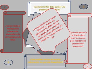 El documento contiene preguntas sobre el manejo de la información, el diseño de presentaciones interactivas, y el comercio electrónico. También incluye una lista numérica de palabras con sus definiciones y una lista de números con palabras asociadas.