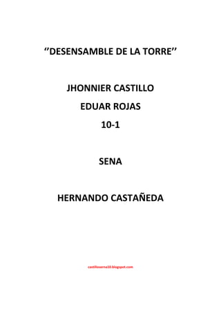 El documento describe las etapas del desensamble de una torre de computadora, incluyendo la remoción de las unidades de CD y diskettes, el disipador de calor, la fuente de poder, el procesador, las tarjetas de video y RAM, y la tarjeta madre, todo realizado con manillas antiestáticas para proteger los componentes.