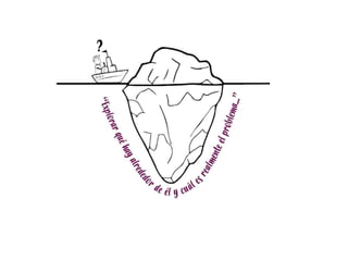 El documento introduce el concepto de design thinking como un marco para la innovación que involucra descomponer problemas, pensar de manera empática y sin límites, y probar soluciones de manera iterativa. Consiste en las fases de empatizar con los usuarios, definir el problema, generar ideas, prototipar soluciones de baja fidelidad, y testear los prototipos con los usuarios para continuar mejorando las soluciones de manera incremental. El diseño thinking busca ofrecer soluciones innovadoras a problemas mediante un enfoque flexible y centrado en las neces