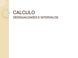 Este documento proporciona una introducción a las desigualdades y los intervalos. Explica las diferentes simbologías de las desigualdades como >, <, ≥ y ≤. Luego describe las propiedades de las desigualdades como la adición, sustracción, multiplicación y división de términos. Finalmente, introduce los diferentes tipos de intervalos como cerrados, abiertos y semiabiertos, y cómo representarlos gráficamente. El documento incluye ejemplos para ilustrar cada concepto.