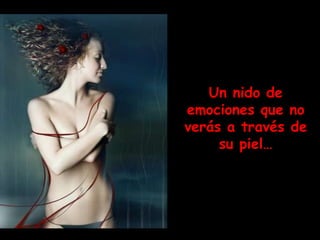 El documento es una colección de poemas que describen la belleza y el misterio del cuerpo femenino de manera no sexual. Resalta que desnudar a una mujer no revela su verdadera esencia, ya que su interior, alma y corazón permanecen ocultos. Sugiere que para conocer a una mujer se requiere mirar con paciencia y que a pesar de estar desnuda, su dignidad y pudor persisten.