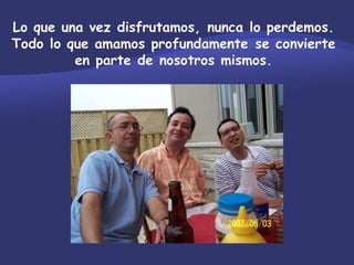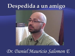 El documento es una carta de despedida de un esposo a su esposa tras su muerte. Expresa que aunque haya fallecido, seguirá presente a través de sus hijos y todo lo que crearon juntos. Le pide que no se aferre al pasado sino que encuentre rastros de él en las personas y lugares que compartieron. Finalmente, le dice que no llore su ausencia física sino que celebre el gran amor que se tuvieron.
