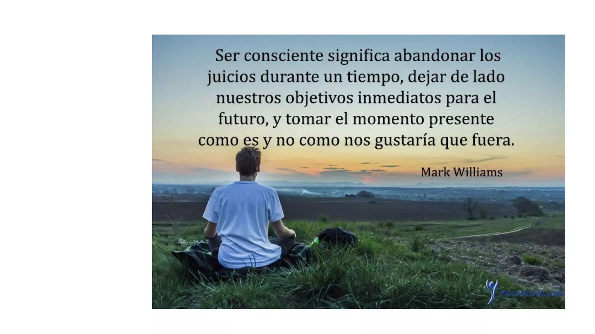 El documento habla sobre la mindfulness o atención plena. Define la mindfulness como prestar atención de manera consciente al momento presente con interés, curiosidad y aceptación, sin juzgar. Explica que la mindfulness nos permite vivir en el presente y estar conscientes de dónde estamos a pesar de que a menudo nos perdemos en pensamientos. También menciona que la meditación silenciosa es una forma de practicar la mindfulness.