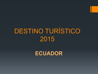 Ecuador posee una alta biodiversidad y conserva el 18% de su territorio como áreas protegidas, 11 de importancia mundial. Ofrece destinos como la Amazonía en el Parque Nacional Cuyabeno, las Islas Galápagos donde los animales no huyen de las personas, y la capital colonial Quito con su arquitectura histórica. El país también alberga diversidad cultural y sitios como Otávalo, famoso por su artesanía, y Cuenca, punto de partida para explorar los Andes del sur.