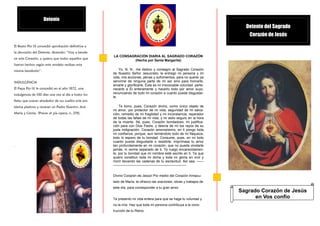 Este documento describe la devoción al Detente del Sagrado Corazón de Jesús. Explica que Santa Margarita María de Alacoque recibió la revelación de Jesús de difundir la imagen de su Sagrado Corazón. Esto dio origen a la costumbre de portar pequeños escudos con la imagen. El Detente ofrece protección contra peligros y es un medio de expresar amor a Jesús. El Papa Pío IX concedió indulgencias a quienes lo usaran.