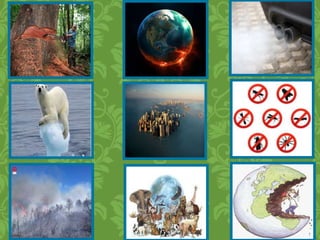 Este documento describe el deterioro ambiental y sus causas y consecuencias. Explica que el deterioro ambiental incluye el calentamiento global, aumento de gases tóxicos, y derretimiento de glaciares. Una causa clave es el efecto invernadero causado por la acumulación de gases en la atmósfera. Otras causas son la deforestación, emisiones de dióxido de carbono de los automóviles, y la contaminación de ríos y mares. Las consecuencias incluyen inundaciones por el aumento del nivel del